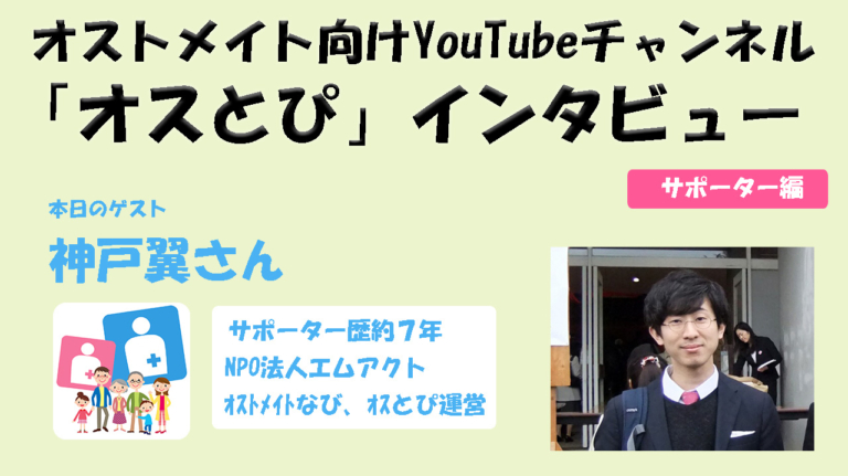 今回はゲストに、「NPO法人エムアクト/オストメイトなびプロジェクト/オスとぴ」を運営する神戸翼さんをお迎えして、いろんなお話を聞いていきたいと思います。